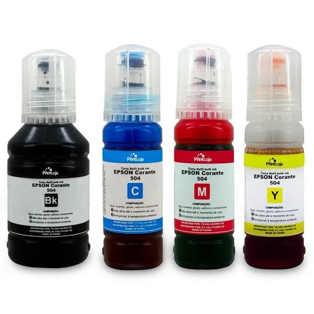 O kit de garrafas de tinta com pontas específicas para a recarga, facilitando o manuseio, evitando desperdícios ou que seja recarregado incorretamente.